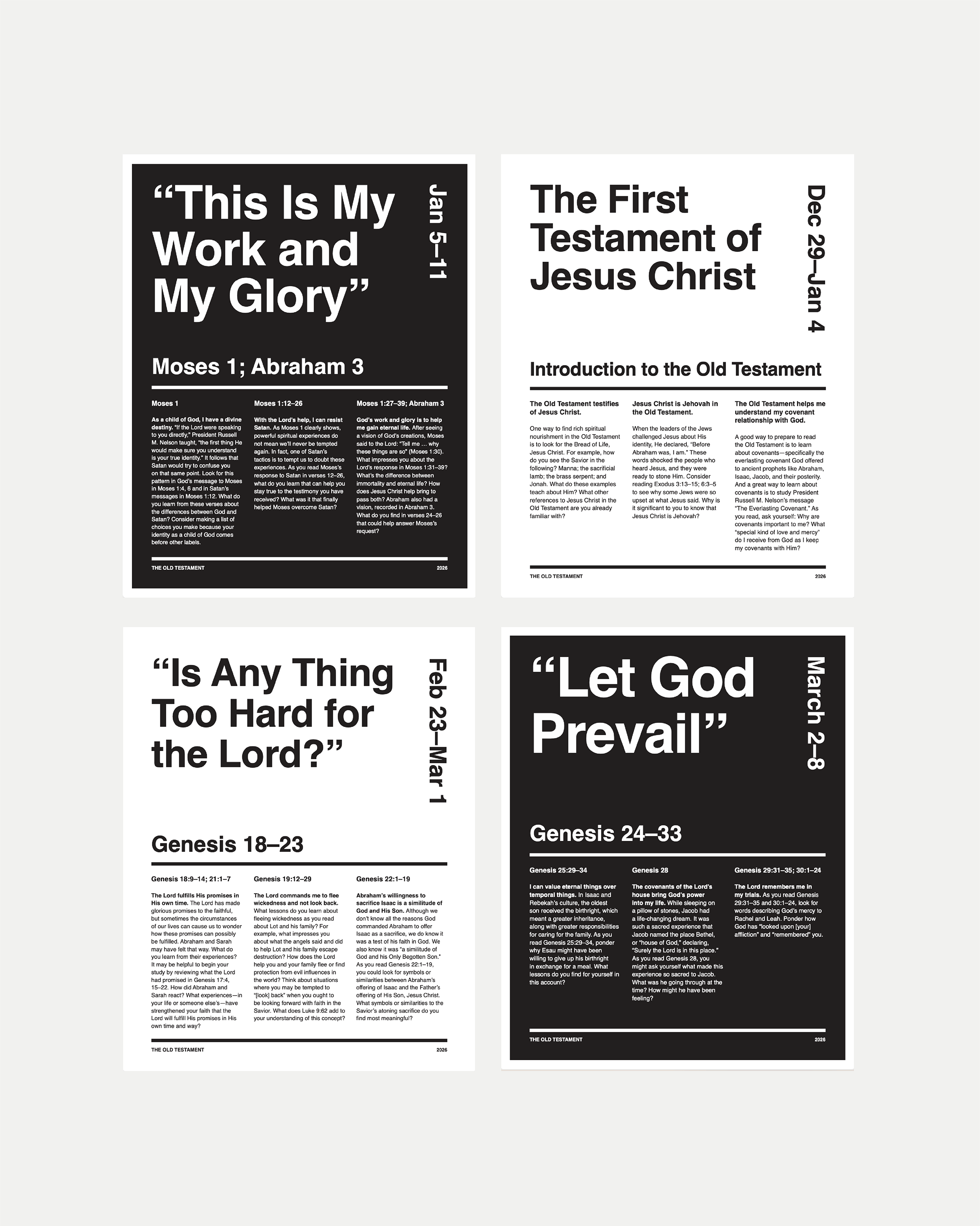 Keep Come, Follow Me top of mind with these weekly lessons on the Old Testament for 2026. All 52 lessons are included in a single poster pad with perforation for easy transition from one week to the next! Each poster includes: (1) the lesson title and reading, in line with the Come, Follow Me curriculum, (2) three selected doctrines and the associated scriptures, and (3) prompts and questions for pondering and family discussion.