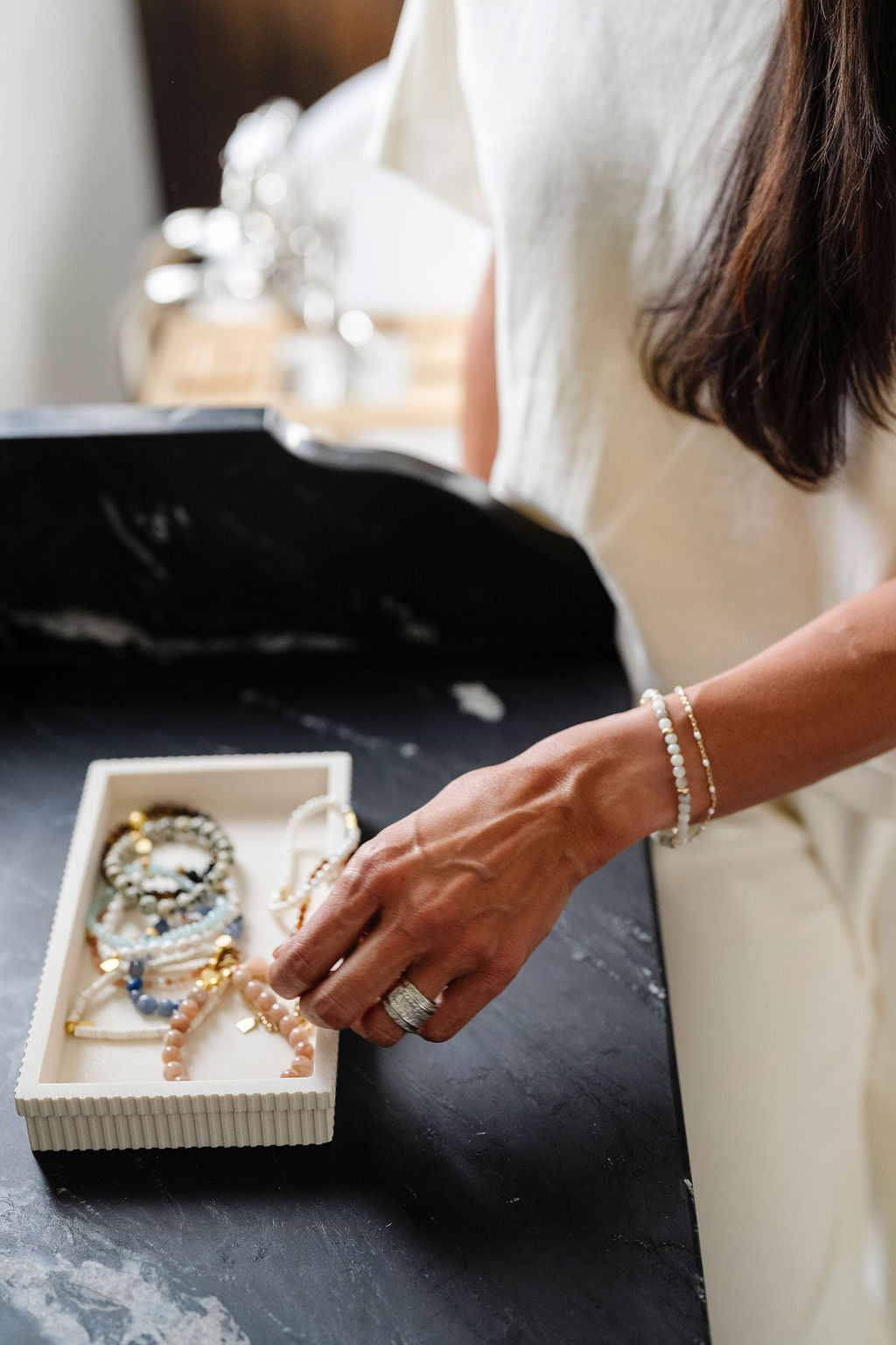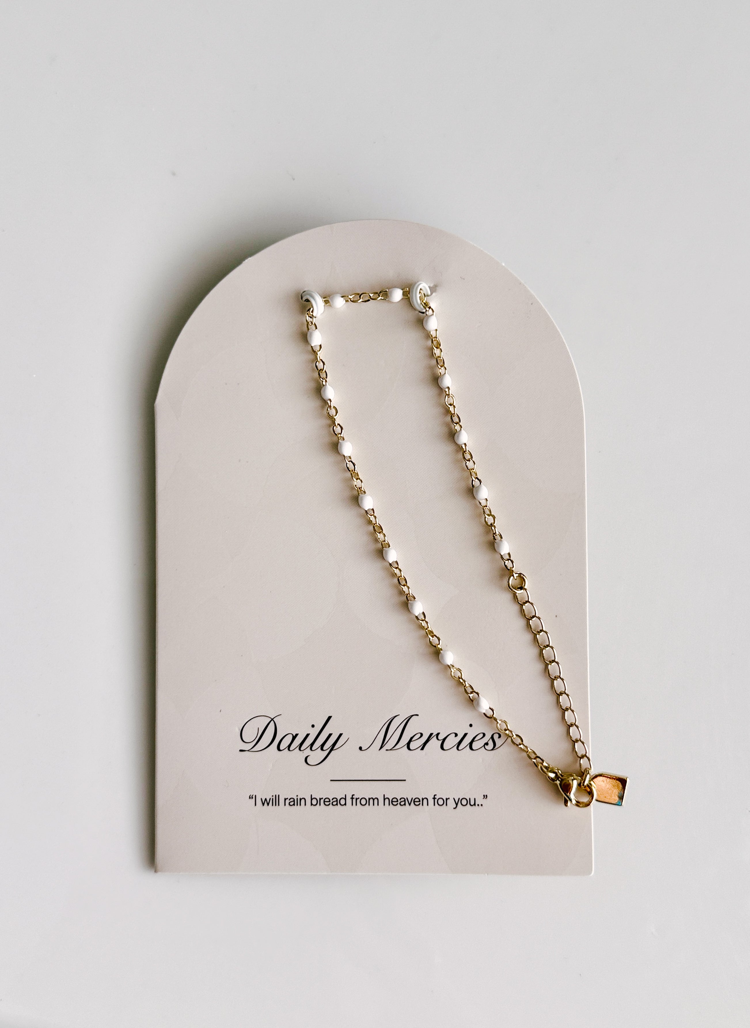 Inspired by the miracle of manna from heaven (described in Exodus 16:4–8), the white enamel beads represent the manna God sent each day and are a reminder of His daily tender mercies. You don’t need to have everything figured out—He already does. Wear this bracelet as a reminder that God still sends mercy with the morning.
