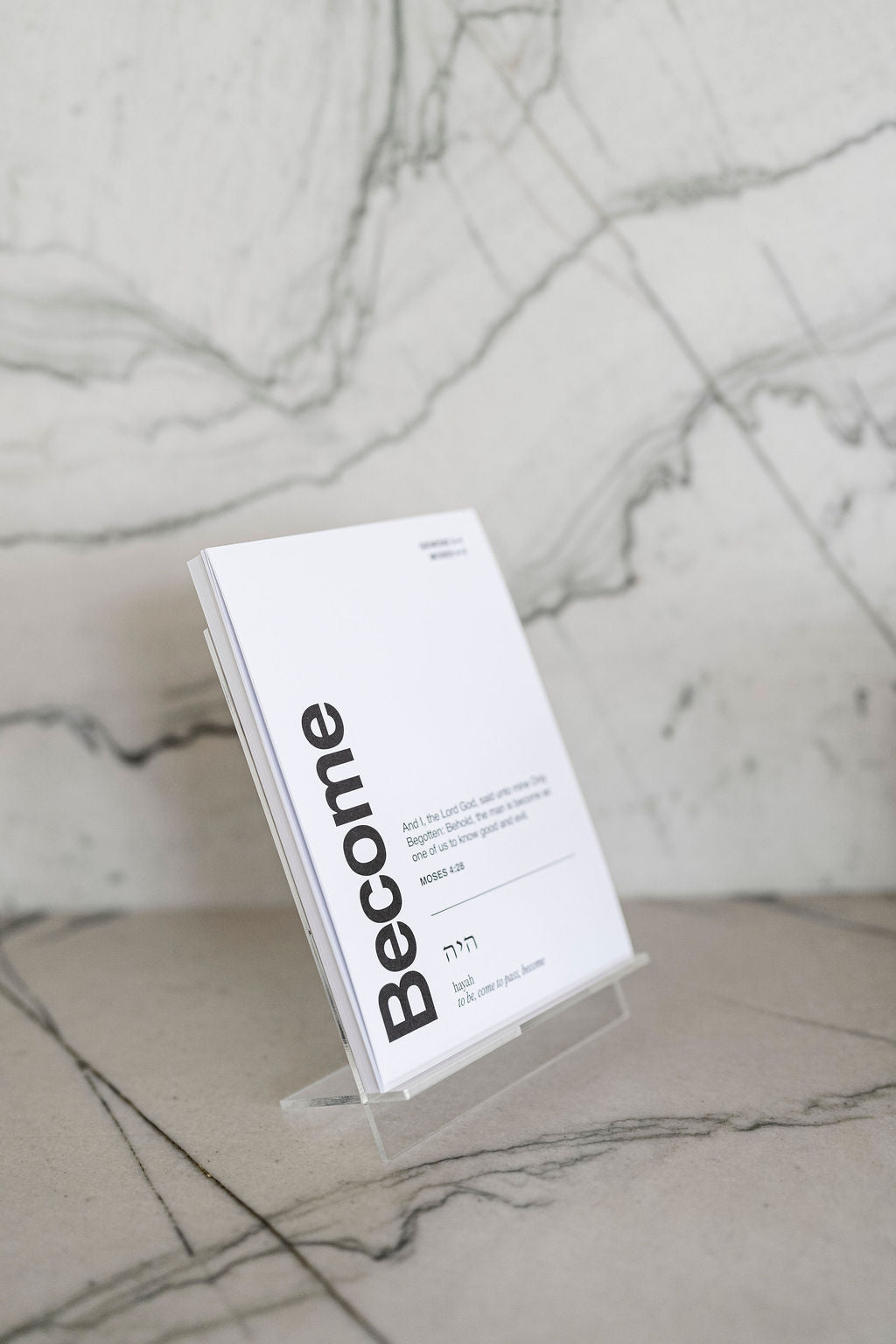 A word a week with a Hebrew definition, one verse, and a stand to display