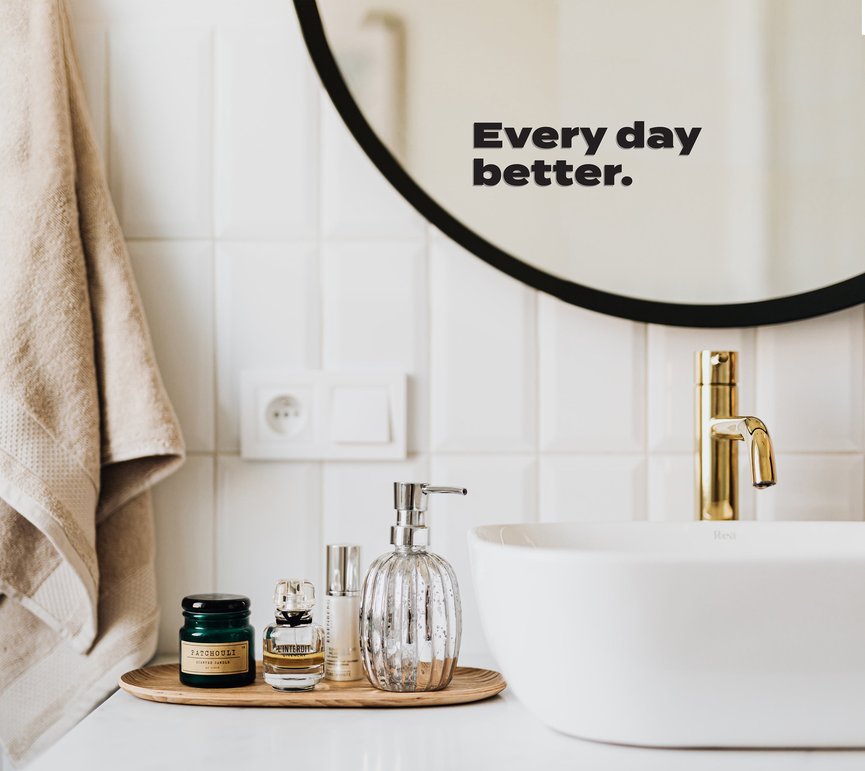 A minimal decal to remind you that it's not about striving for drastic growth or change but about striving—every day—to be just a little better. This high-quality vinyl transfer sticker is designed for your mirror, computer, windows, or wherever you'll see it most.