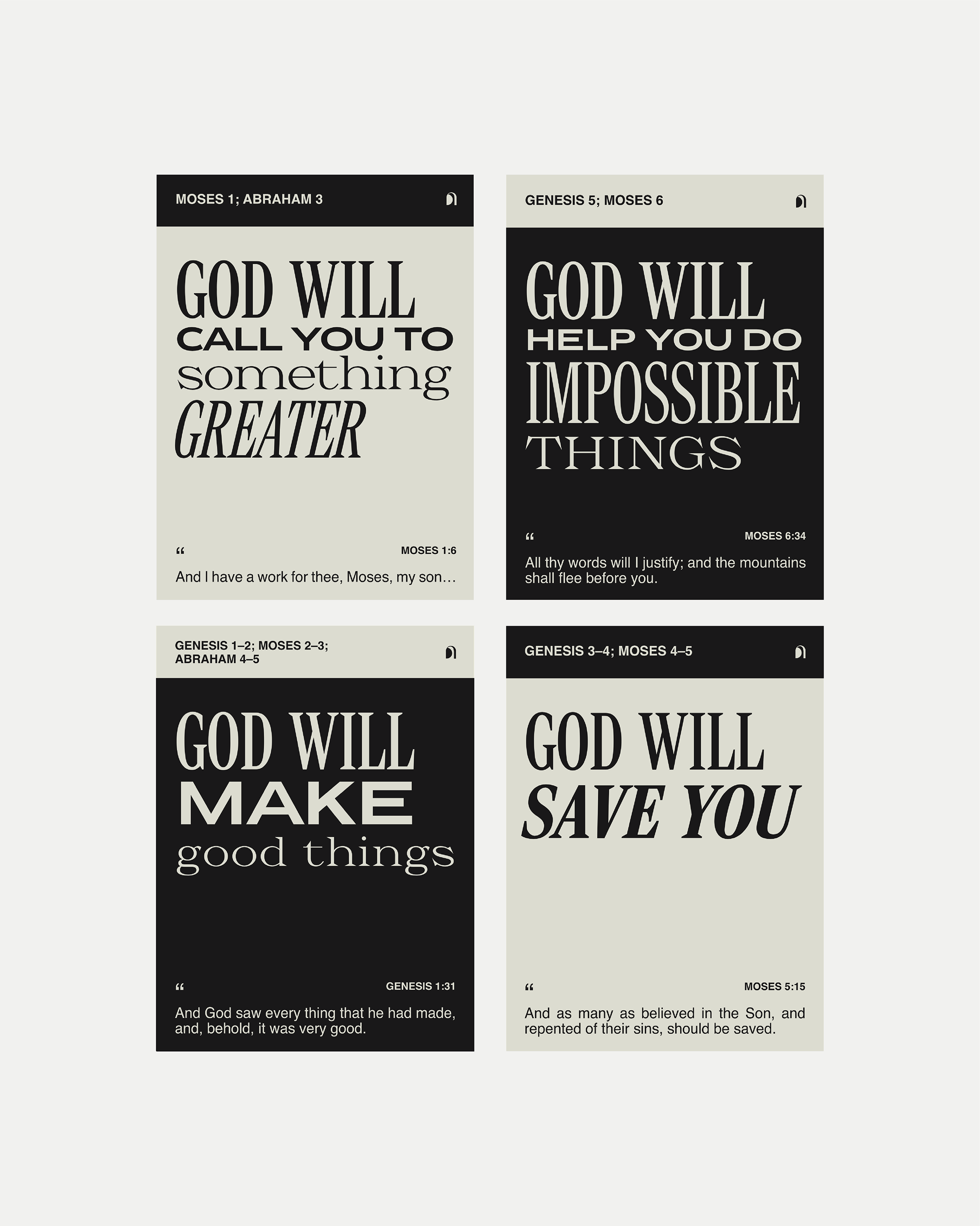 Getting started in the scriptures can be overwhelming—especially a book as big as the Old Testament. Our God Will Tearaways will help you and your loved ones find and remember the promises from God throughout this year's book of scripture. Each page is a note you can tear away and place wherever you need it, whether that's in your car, on your mirror, or in your scriptures. Plus, your order includes three full sets, allowing you to gift two pads to whomever in your life needs the reminders. By the end of the year, we hope you (and those around you!) will be better equipped to see and feel of His love!