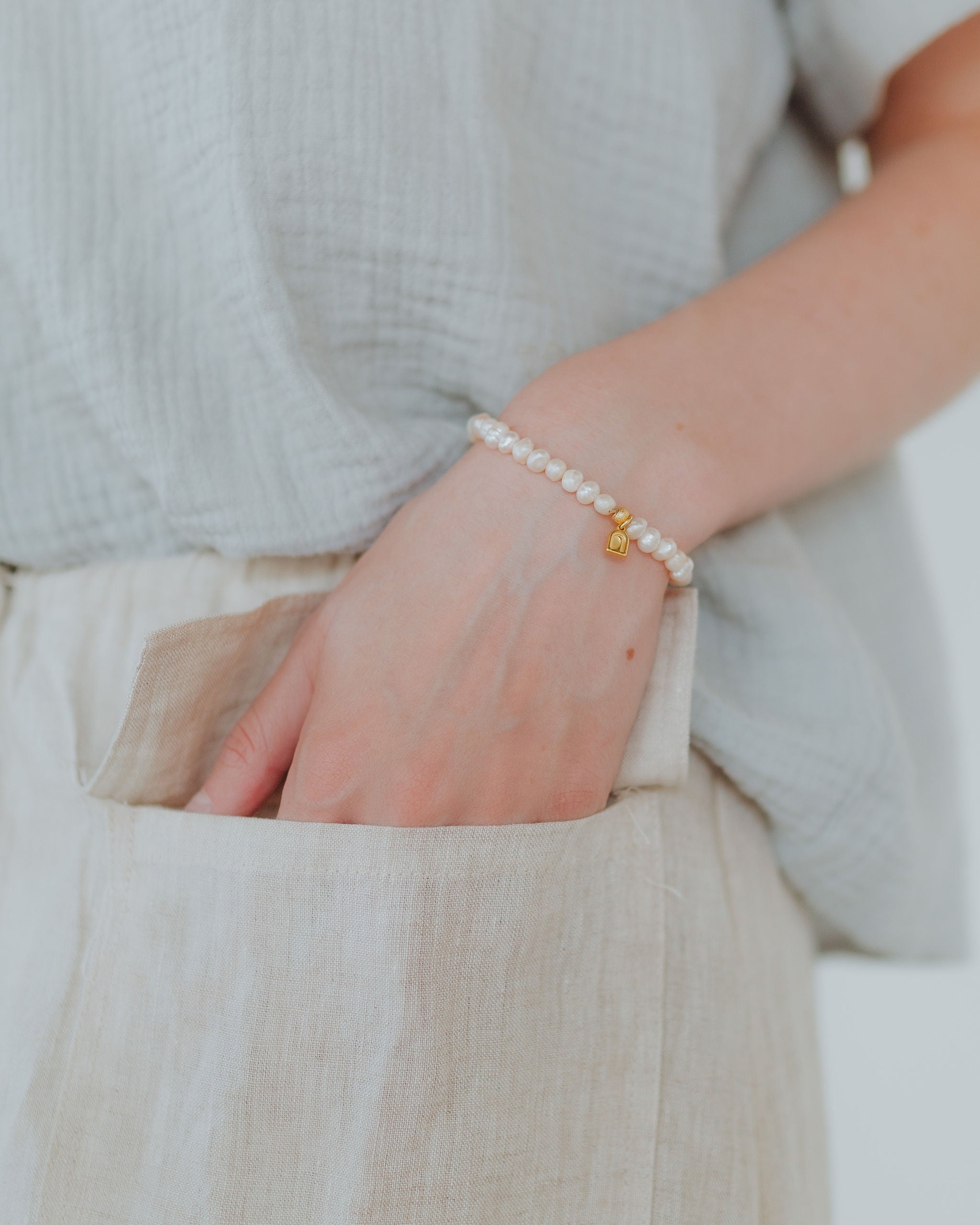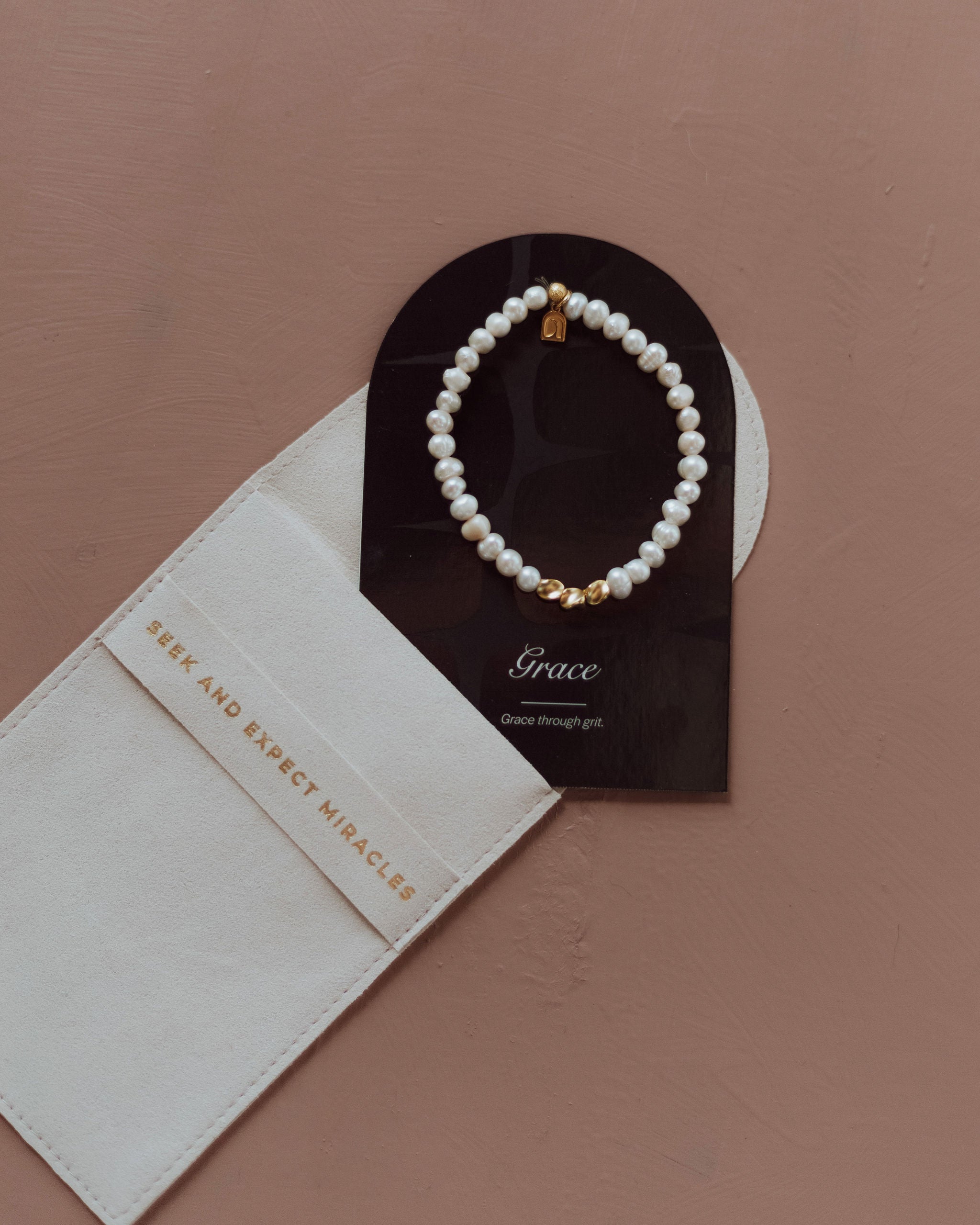 Inspired by the grace all throughout the miracles of Jesus Christ, the genuine freshwater pearls in this bracelet symbolize the refining process we experience in the process of becoming. He will turn trials into blessings. He makes beauty from the ashes. Wear this bracelet as a reminder that He is a God of grace. *Due to the nature of freshwater pearls, there will be some irregularity to their size and sheen.