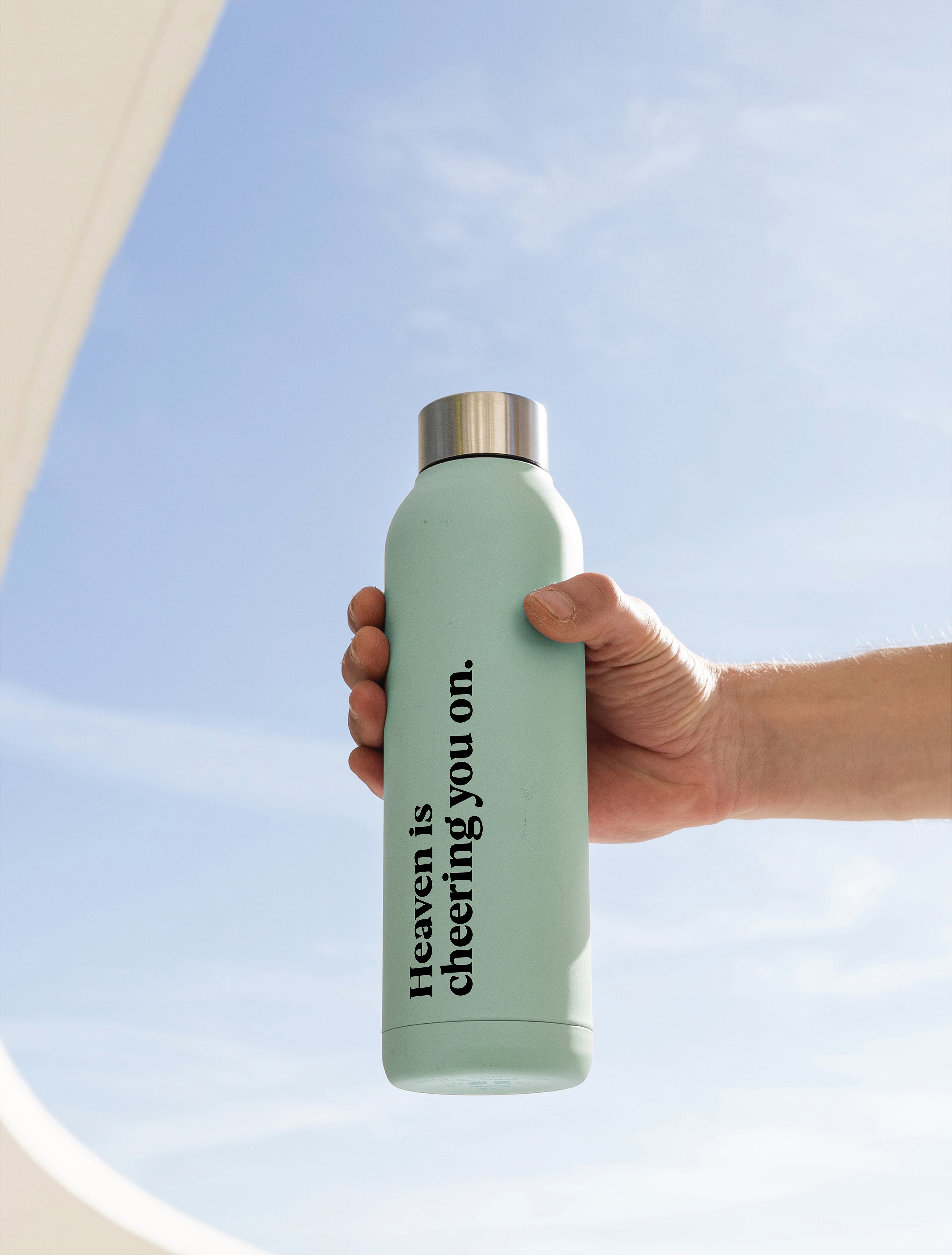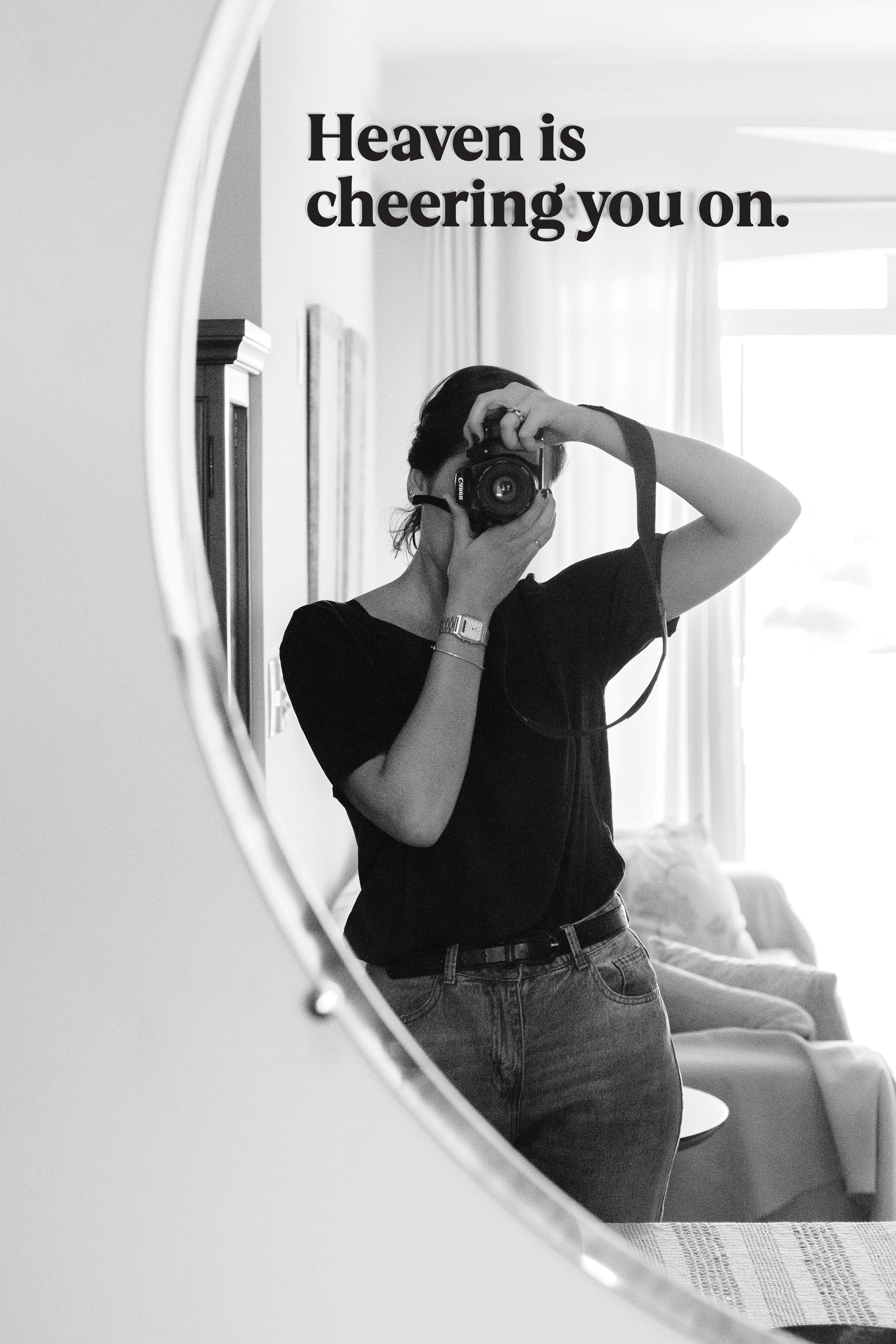 A minimal decal to remind you to that "heaven is cheering you on today, tomorrow, and forever." Available in two sizes, and one of our best sellers, this high-quality vinyl transfer sticker is designed for your mirror, computer, windows, water bottles—or wherever you'll see it most.