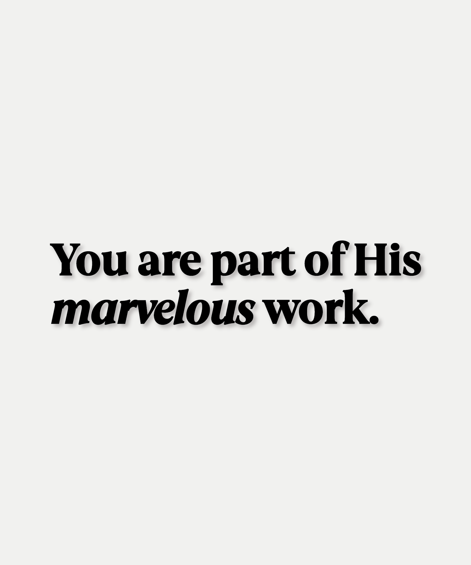 A minimal decal to remind you that you are part of His marvelous work. This high-quality vinyl transfer sticker is designed for your mirror, computer, windows, or wherever you'll see it most.