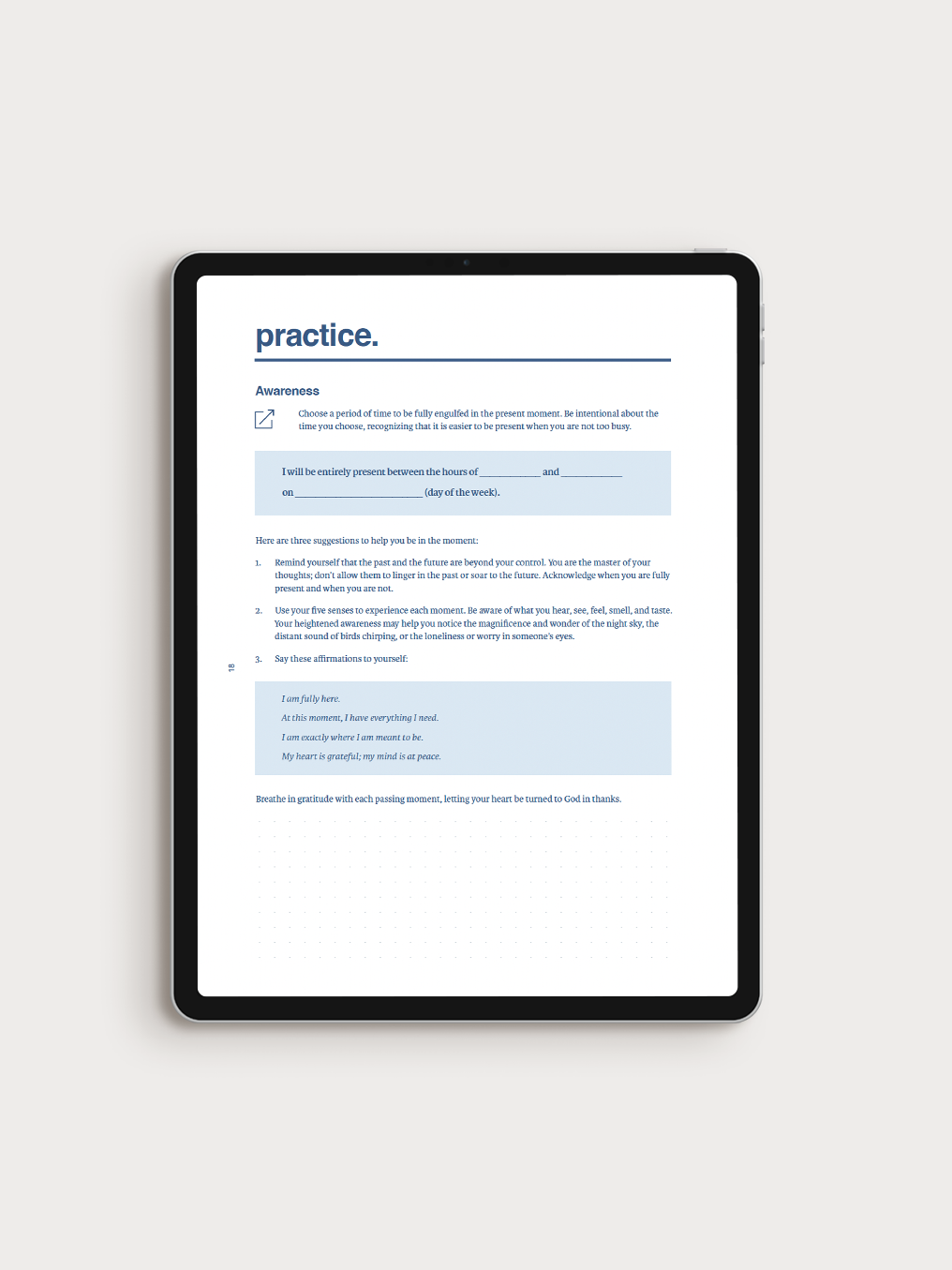 In collaboration with Megan and Amanda Teerlink, we're so excited to introduce Mindful Living: Practicing Stillness Through the Lens of the Gospel. In an overstimulating, overwhelming world, it can be hard to tune out the noise and find true peace. This topical guide is filled with deep, simple practices that invite you to put on the mind of Christ and discover the beautiful parallels between the power of mindfulness and the teachings of His gospel. Throughout your experience, you will come away with skills and techniques to welcome in the stillness and peace into our inner world, regardless of what our outer world might look like.