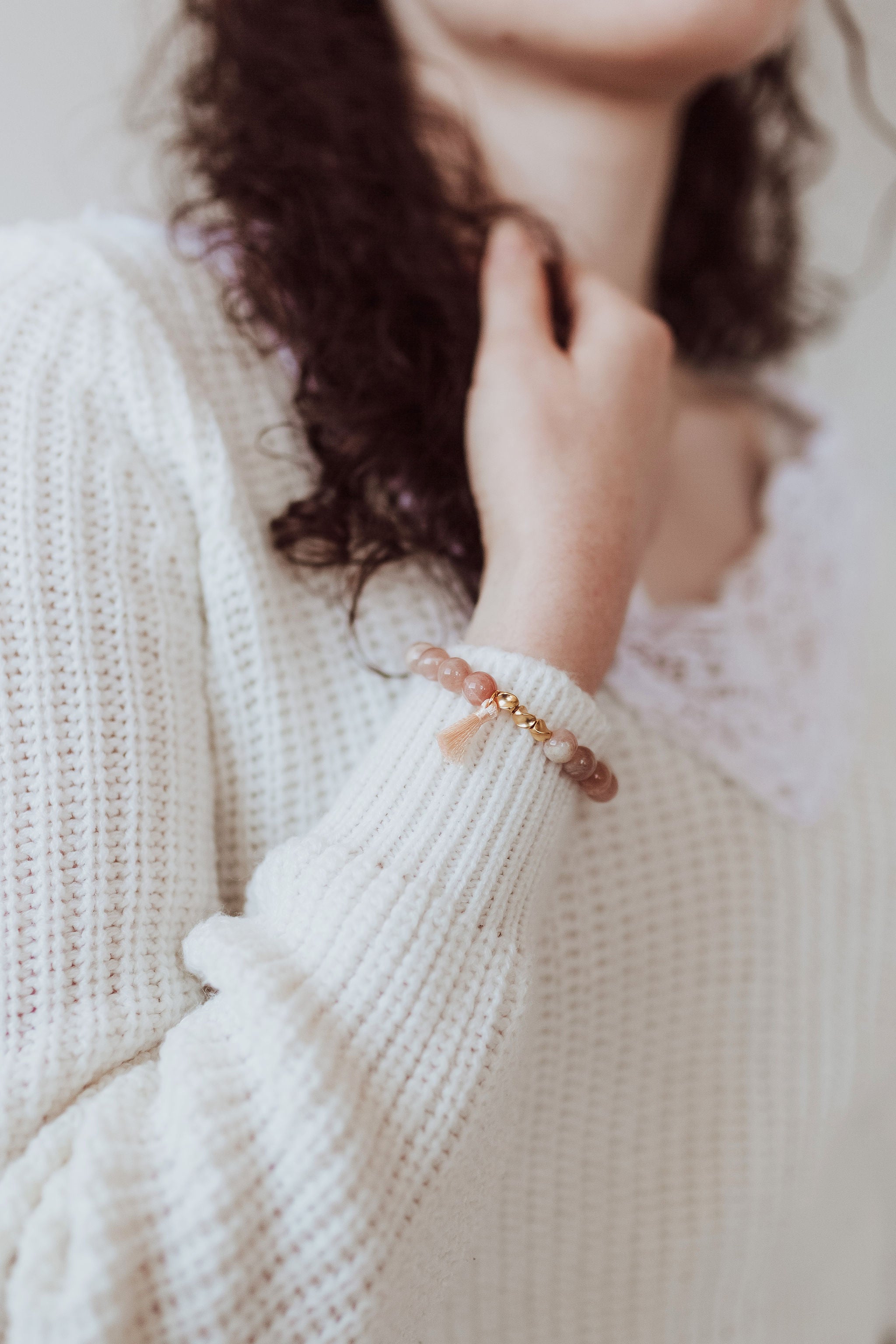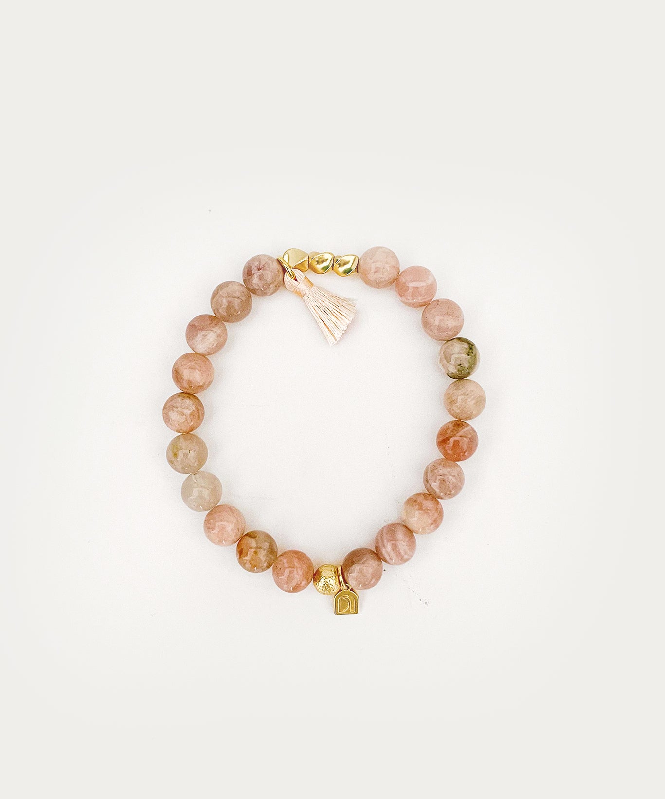 Inspired by the miracle of the woman with the issue of blood (described in Luke 8:43-48), the peach moonstone beads and the tassel in this bracelet symbolize the border of His garment, reminding us that reaching moments lead to miracles. You are known by Him, His strength is at your fingertips. Let this bracelet remind you that He is a God of strength.