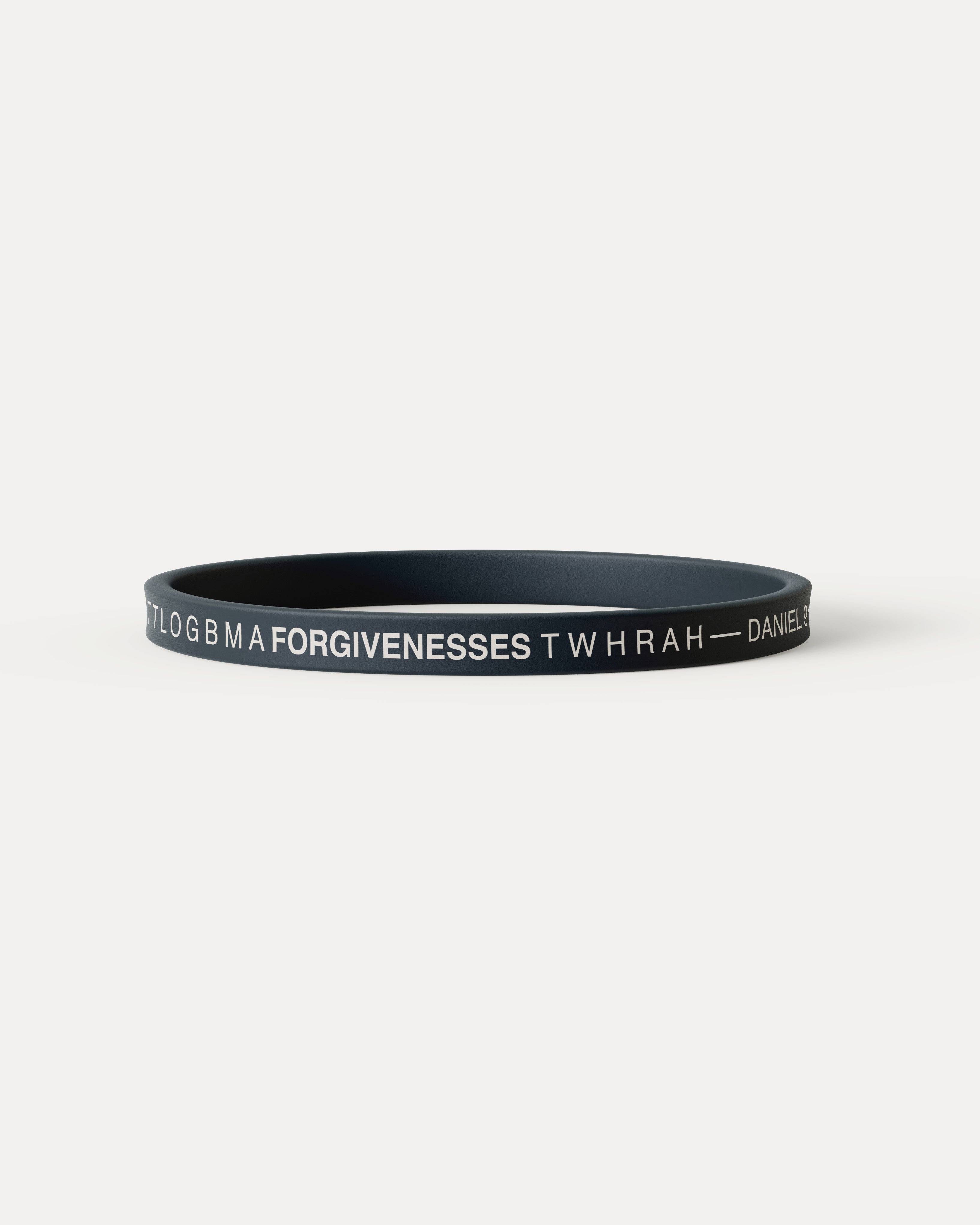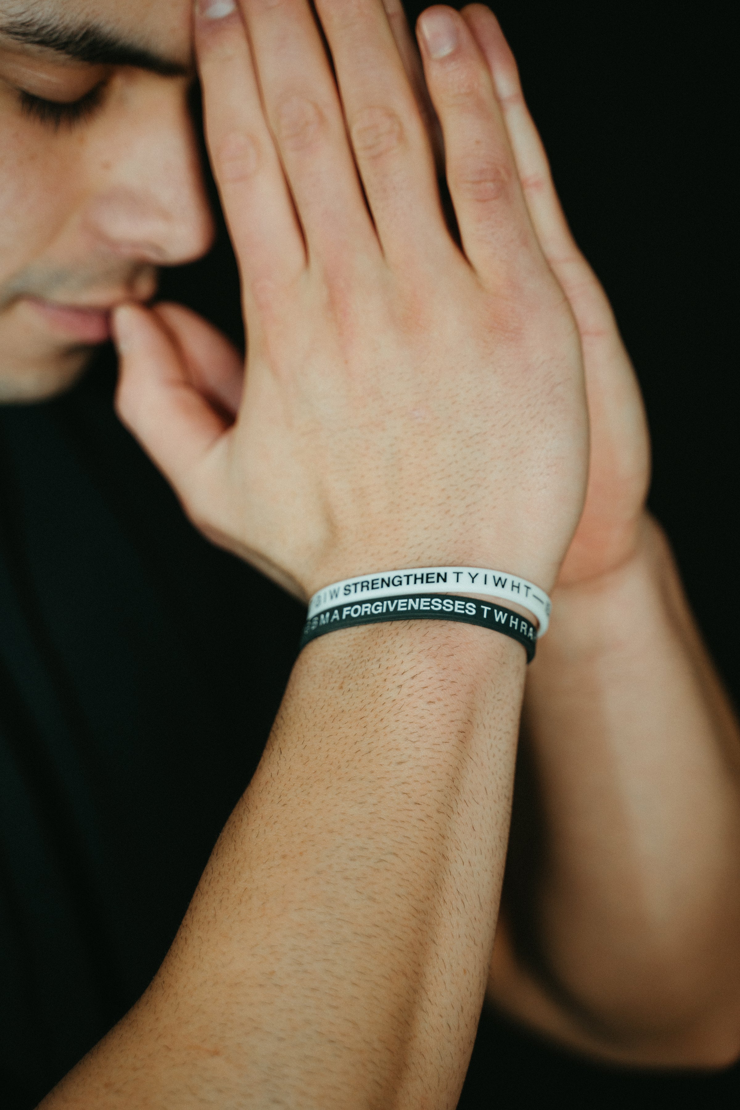 The letters on the silicone bracelets are the first letters of each word of the verse they come from. It can be both a reminder of what it teaches and a way to memorize them—locking the words up in your heart.