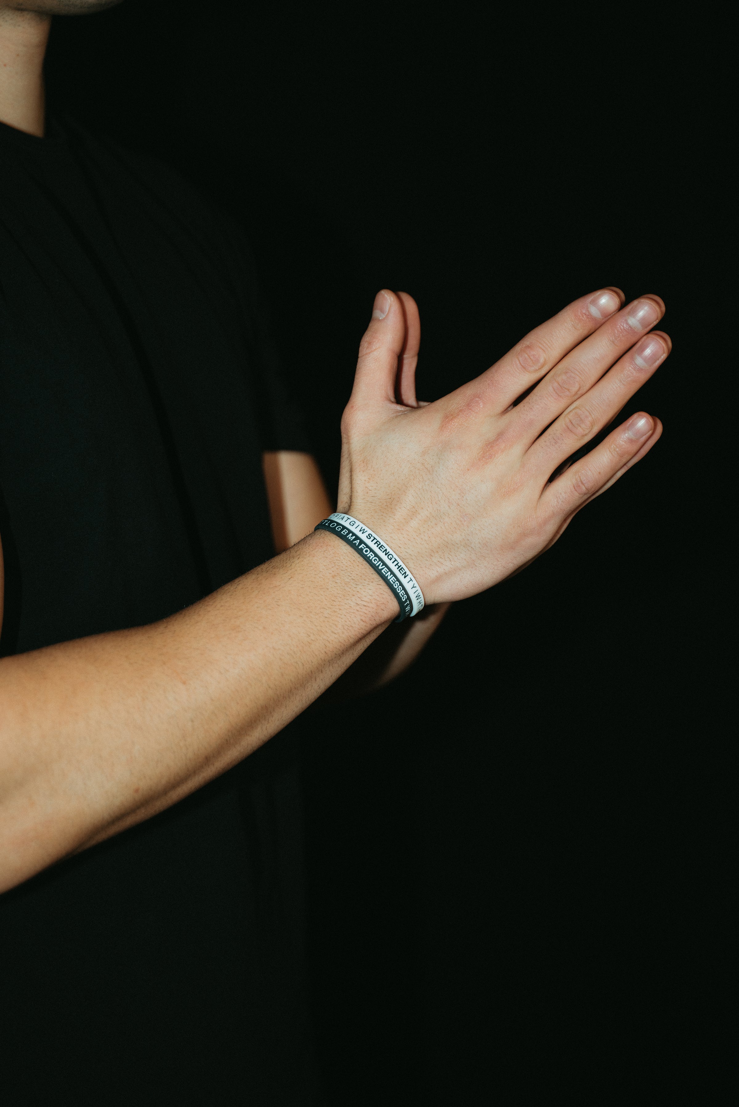 The letters on the silicone bracelets are the first letters of each word of the verse they come from. It can be both a reminder of what it teaches and a way to memorize them—locking the words up in your heart.