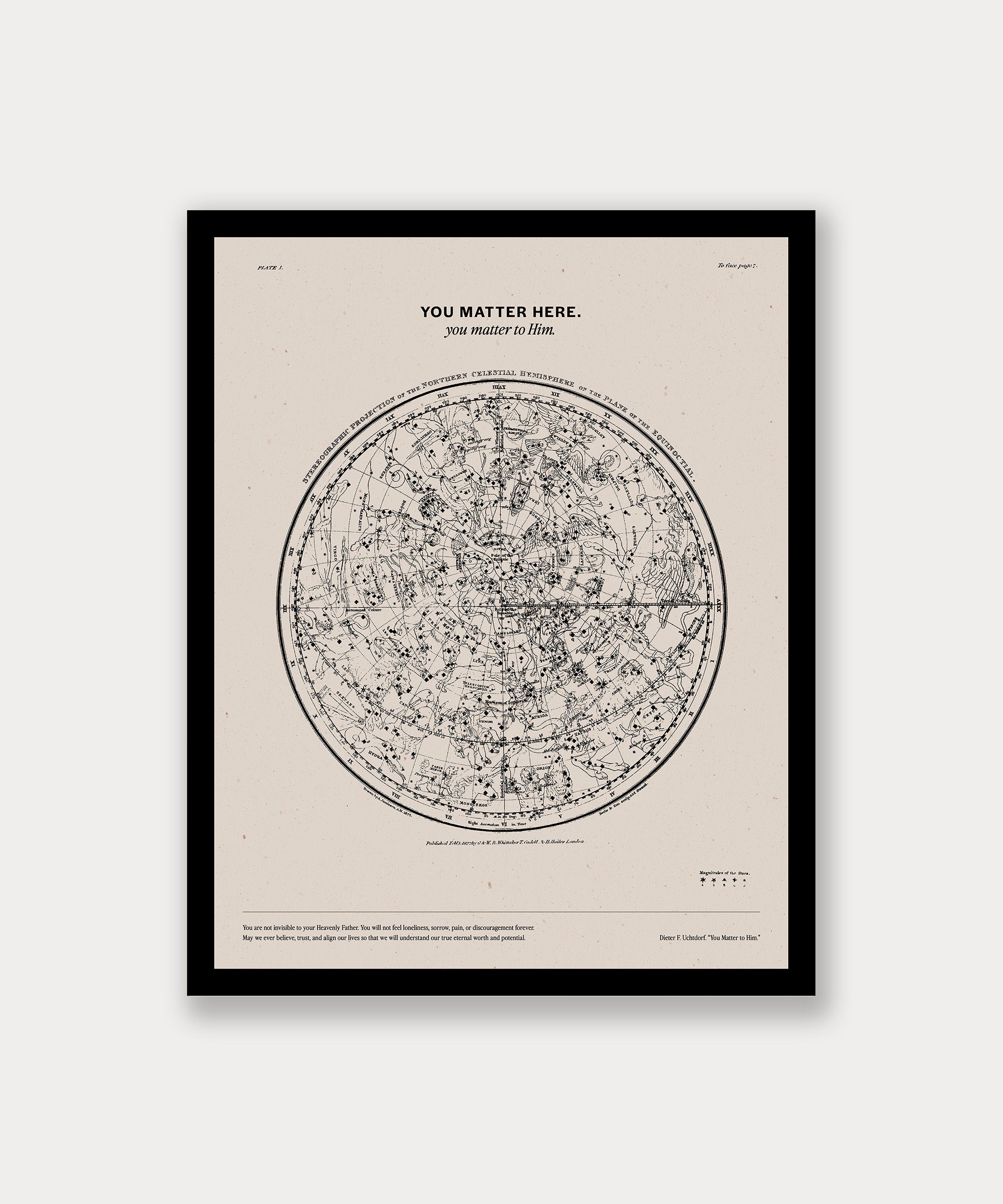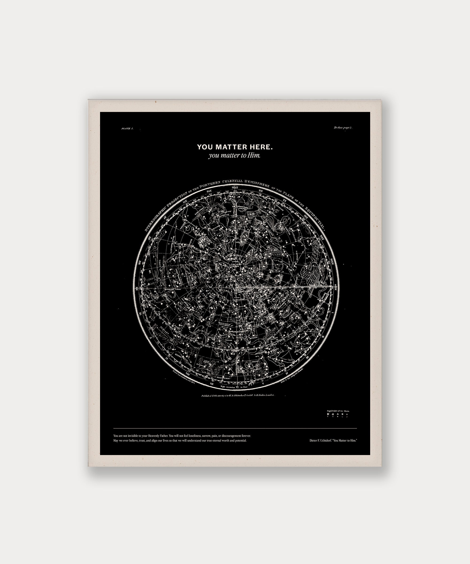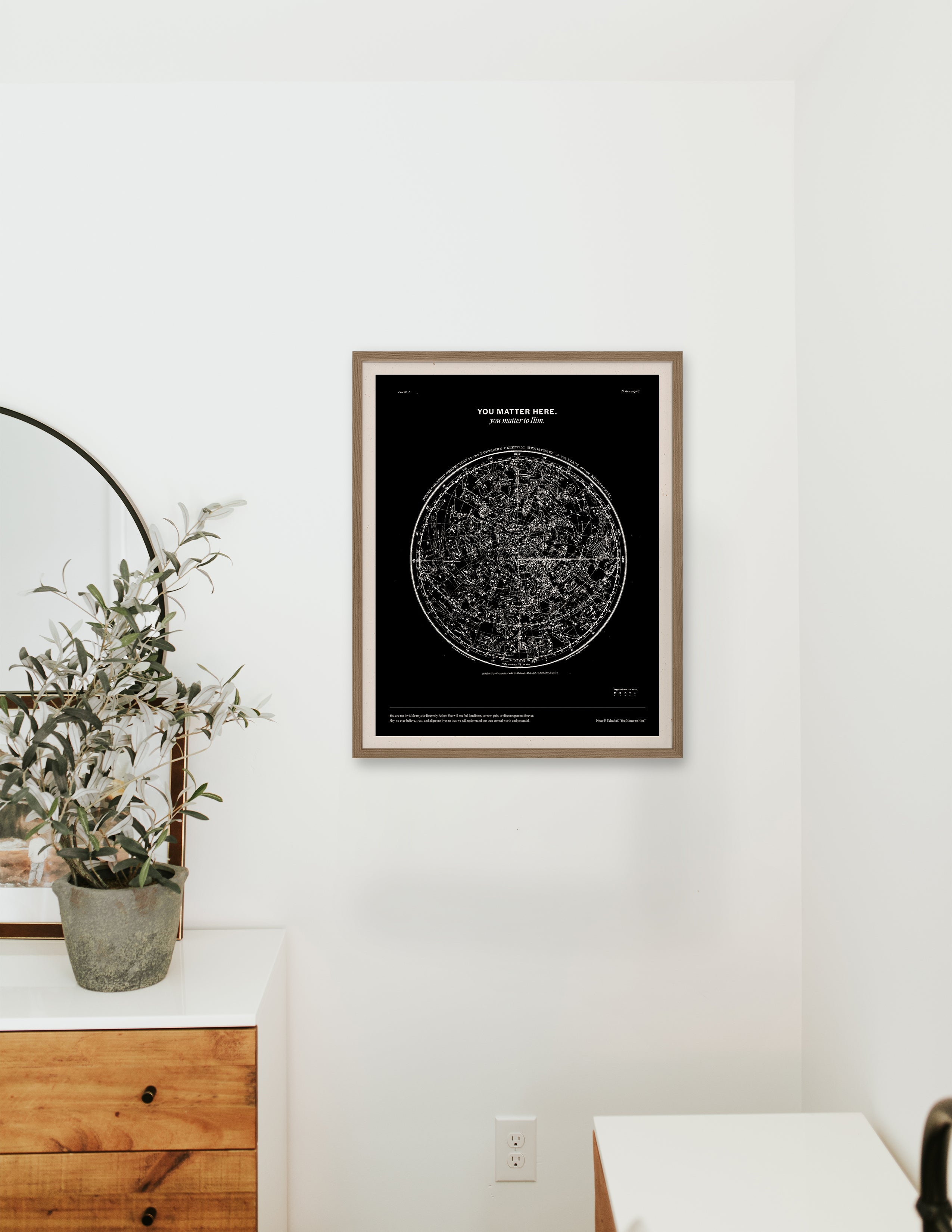 Display the timeless truth that you matter here and you matter to Him in this contemporary take on star maps–a reminder that you are numbered among the heavens.